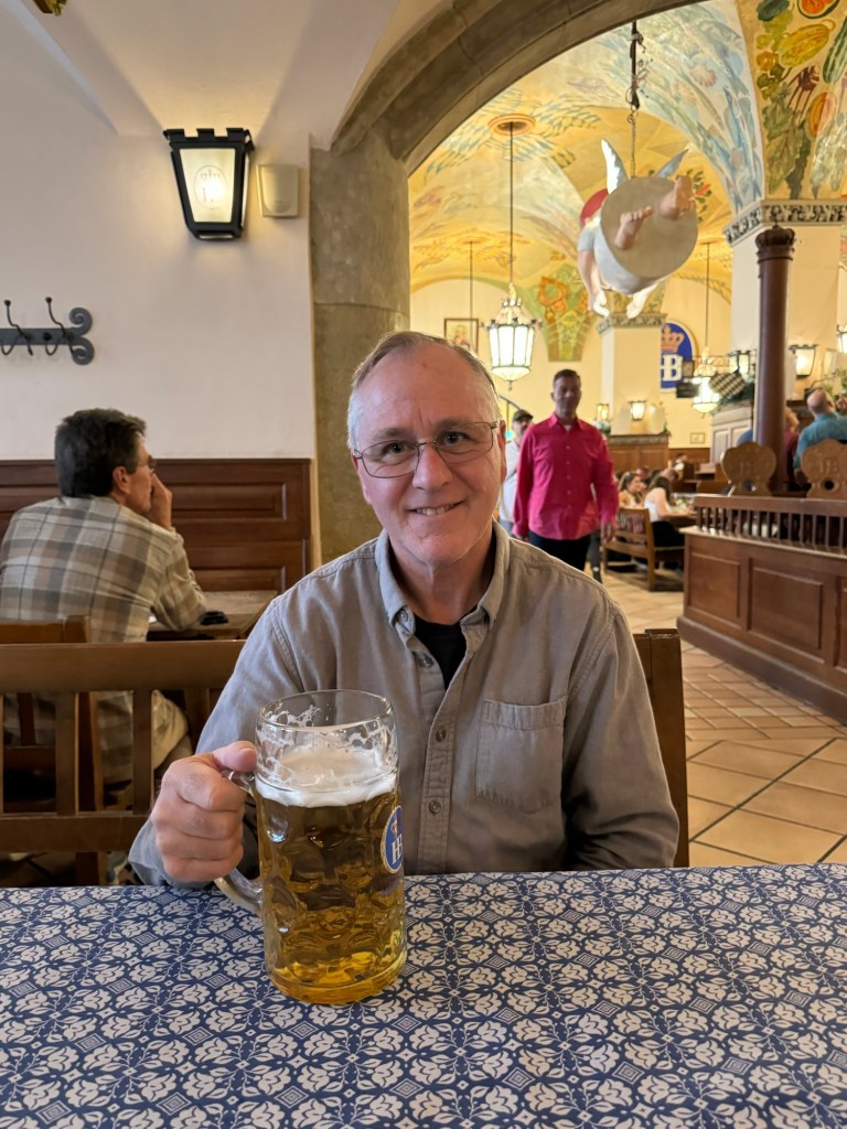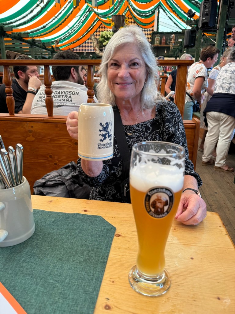 Here it is, Saturday morning in Germany. We arrived Wednesday morning and it has been go go go ever since. We are staying in Dachau, a smaller town outside of Munich. Oktoberfest starts today and Munich lodging is overpriced. Since I made the reservation only 16 hours before we departed from home we took what we could get. The hotel is fine and only a 7 minute walk to the S bahn station allowing us easy transport to get around. On arrival day and the following day we explored Munich. On night 2 we went to the famous Hofbräuhaus for dinner. Wow! It was crazy crowded and very loud. The food was meh, but it is set up with long tables so it’s a nice opportunity to meet people. We spoke at length with two younger guys from the Czech Republic and a couple from Aachen, Germany. Yesterday we went to the charming town of Regensburg. We both really enjoyed it there. Today is a special day for us, but that will be left for another post.