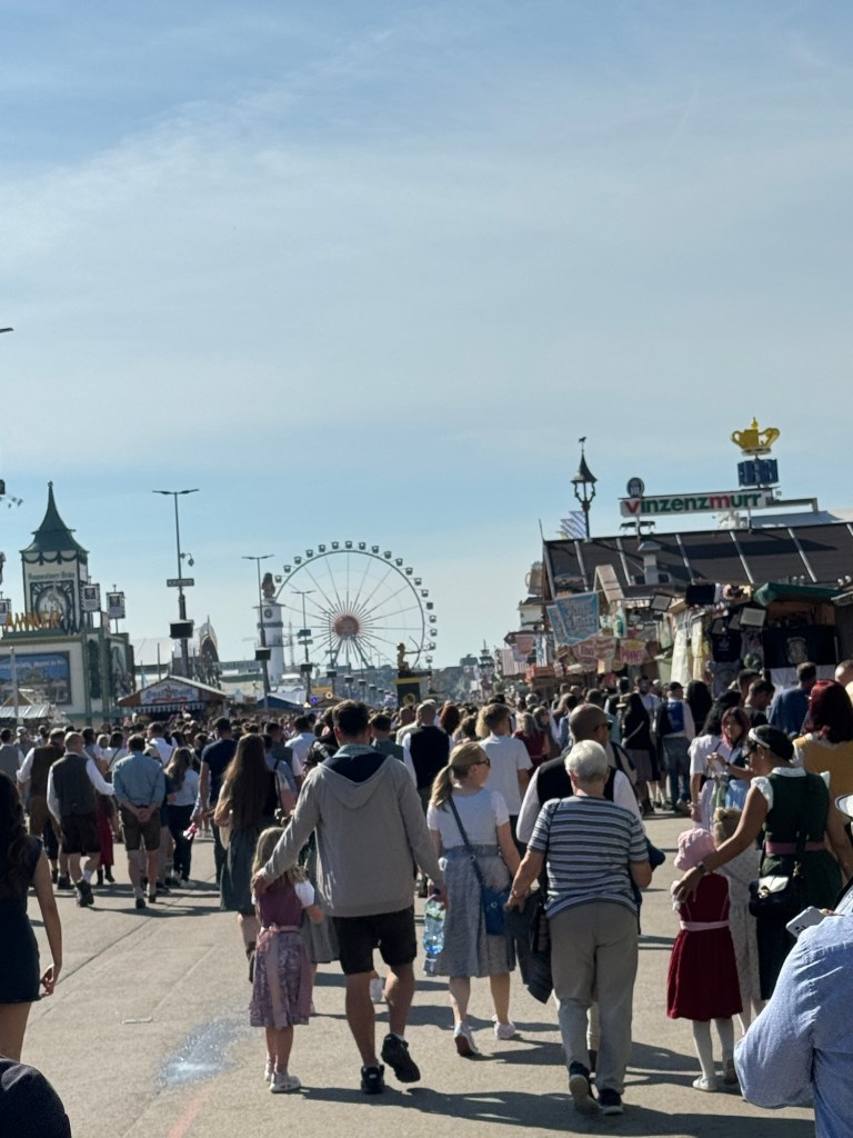 We did it! We went to Oktoberfest on Sunday, September 22nd. It was crowded, as I expected, but interesting in a cultural way. We got started later than we thought we would and it was 11:00 when we arrived. We hadn’t had anything to eat or drink so we quickly found a stand that had pastries and drinks. After that we started walking around. My observations are that it is like a State Fair with a lot of beer tents and beer gardens, the occasional place with wine, and food and drinks. There were a lot of rides. What surprised me the most was how many people were dressed in traditional clothes, lederhosen for the men and dirndls for the women. Even most of the kids were dressed traditionally. Although people come to Oktoberfest from all over the world it felt like a lot of locals and families were there. I’m glad we experienced it. We went in 2010, but literally for about 3 hours and we spent the majority of the time in one beer tent. This time we got a real feel for the event and activities.