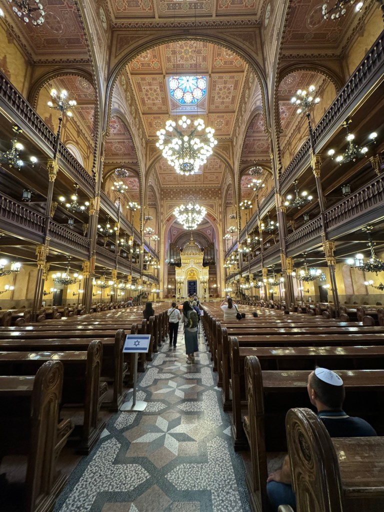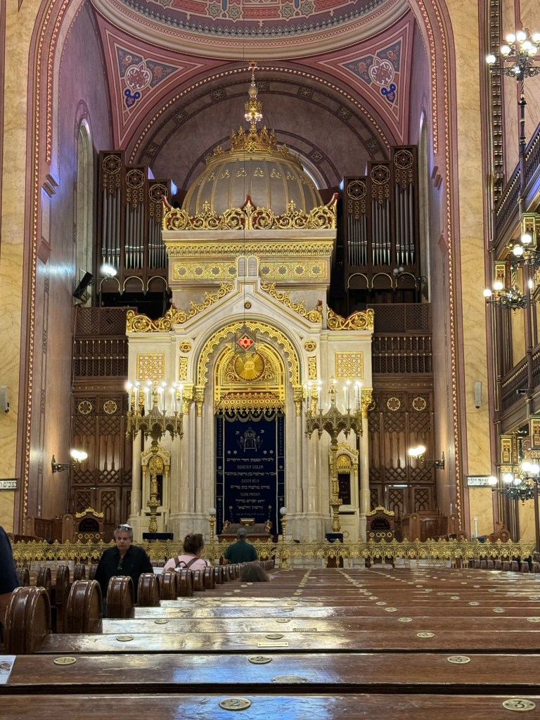 Thursday was our first full day in Budapest. We walked down to the Danube, which had flooded last week due to the torrential rains they experienced in parts of central Europe. There was a lot of debris in the water, which was still running high. The cobblestone sidewalk that parallels the river was covered with silt. We went on a walking tour of the Jewish Quarter, which was very interesting. The tour didn’t allow any opportunity to go inside anywhere, so we got a quick bite to eat after the tour and went back to the Dohany Street Synagogue, the largest synagogue in Europe and the second largest in the world. It holds 3,000 people. It is a stunning building, designed by two non-Jewish men. In some ways it resembles a Catholic Church inside. By the time we took a one hour tour of the synagogue and then went through the museum we were tired. We ended up walking back to our apartment late in the afternoon and just hung out there for the evening. We must pace ourselves. Friday is a very busy day.
