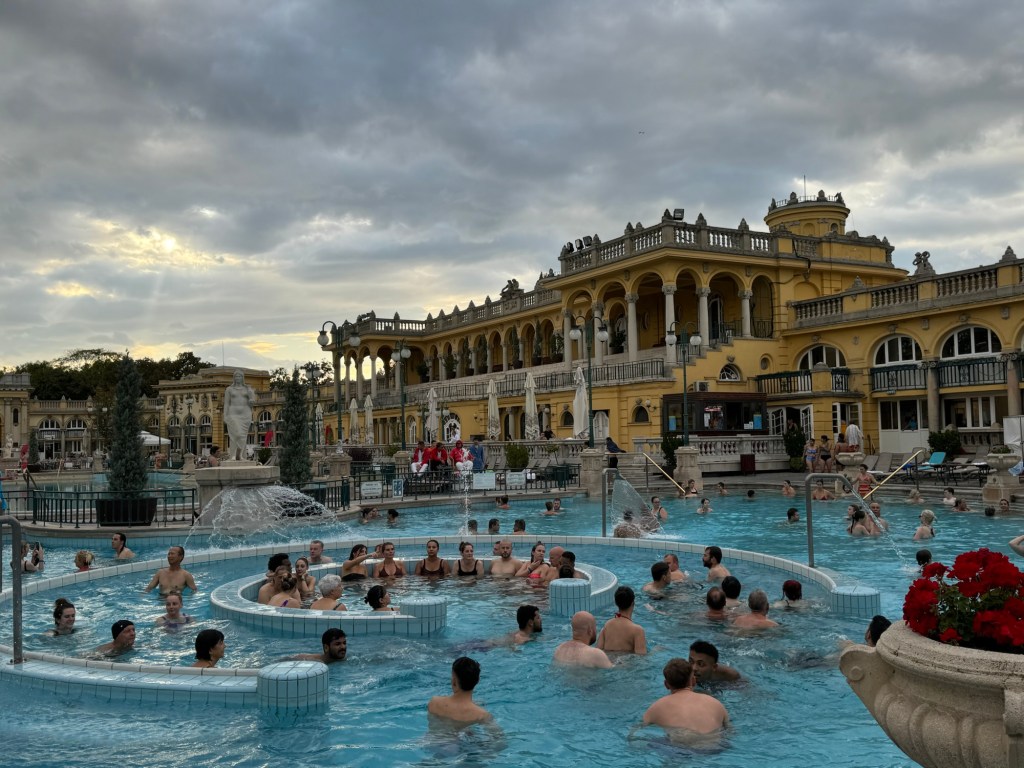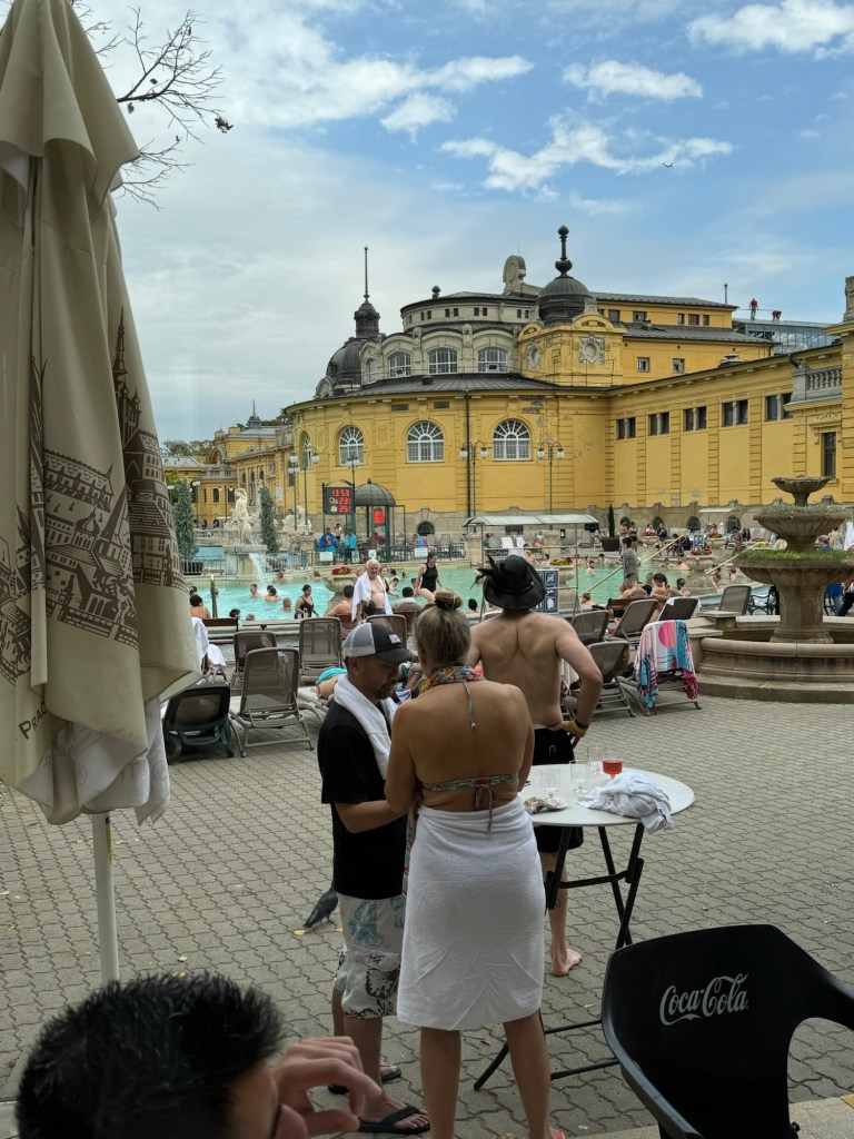Friday was a very busy day. We started off with what I thought was a 1.5 hour walking tour called Welcome to Budapest Historic Center. It was very interesting and I learned a lot about the history of Budapest and the rest of the country. The guide also touched on some of the cultural heritage and language. As we walked, and walked, and walked I looked at the time and noticed how long we had been on the tour. It had been 1.5 hours and we were far from being done. Turns out it was a 2.5 hour tour. We had plans for the afternoon but our timing was flexible. After finishing off the walking tour we raced back to the apartment to grab what we needed for our next activity. We were going to the Széchenyi Bath. Thermal baths are a big part of the culture here so we wanted to check one out. We chose this bath because it’s the biggest and most popular. We took a metro train to the bath, and we were sitting by a couple from Cleveland. I mentioned we have a good friend from there and the woman asked me her name. She knew or knew of my friend and her family. It’s a small world. After enjoying the baths we returned to our apartment to shower and dress for a belated anniversary dinner. It was delicious. It had been a full day. As we were getting ready to leave the restaurant I got a message from an acquaintance who lives here telling me that he was at a wine bar down the street from our apartment and he was waiting for another acquaintance who had just arrived in town for a couple of weeks. I knew we would be seeing them, but I wasn’t expecting it today. Yes, let’s go! We had a nice visit with them and drank some delicious Hungarian wine. It was a really nice day.