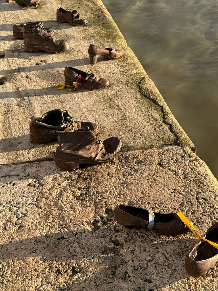 After spending too much time at the train station we went to the Great Market Hall, where there are food vendors and other things you can buy. From there we went to St. Stephens Cathedral. They had a special event through the weekend so they weren’t charging admission. It is stunning inside, but they also had a lot of cameras, etc. for what I’m guessing is something happening Sunday. After that we went to the Parliament building, which is enormous. There was no way to fit it into a picture so I’ll take one from across the river today. We walked halfway across the Chain Bridge and saw the Shoes on the Danube. Explanations will be under the photos. We finished the day off with a nice Hungarian dinner of Chicken Paprikash. It was served with Hungarian dumplings, which are just like German spatzle. Delicious. I forgot to take a picture.