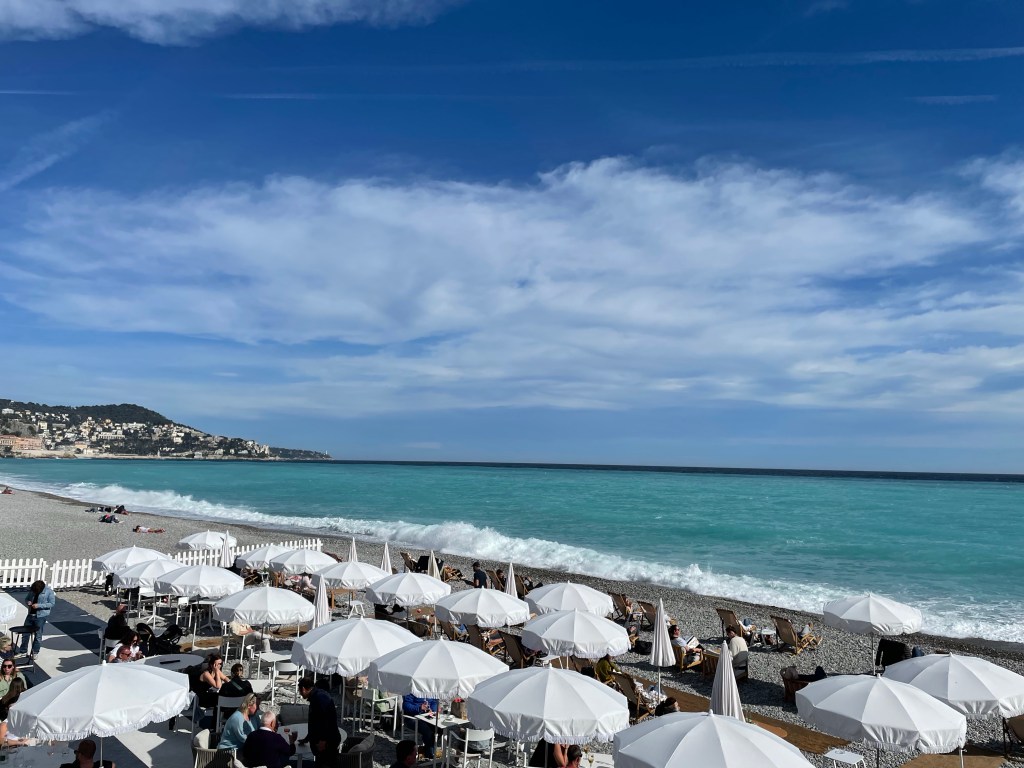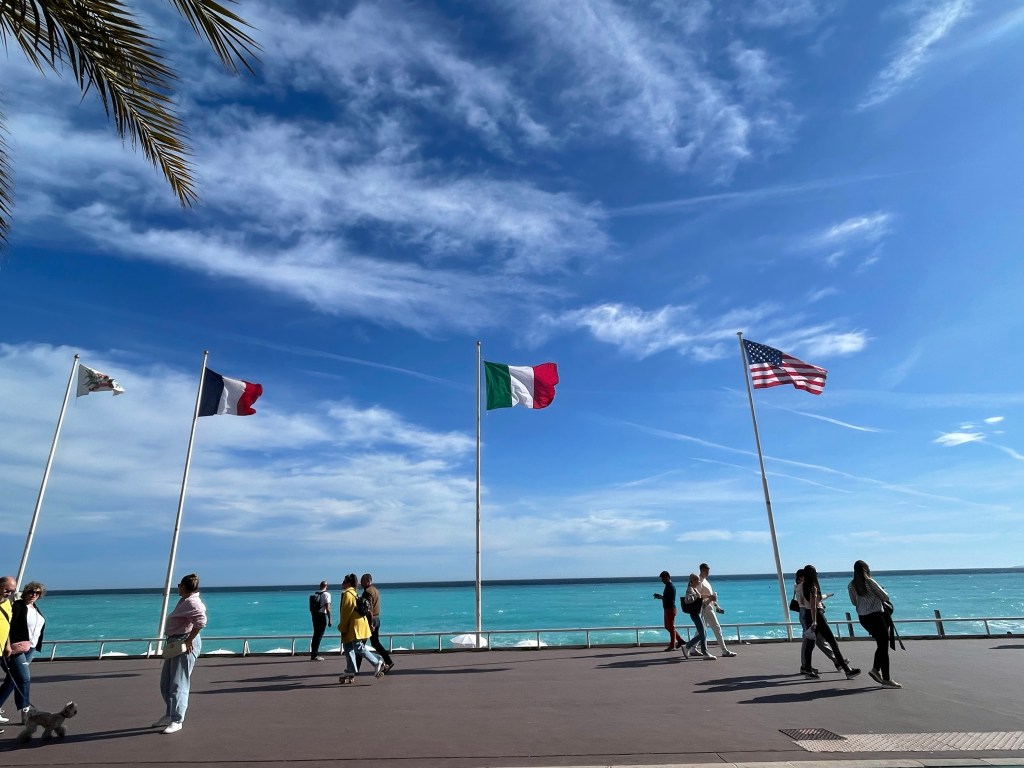 We decided to take the bus back to Nice, because I had heard the views were better. We were trying to figure out where to catch the correct bus and a very nice man asked if he could help. He didn’t speak English, but we were able to convey which bus we were looking for. He told us to go right and it would pick us up there. We were just outside a tourist information office and confirmed what he told us. We turned right at the corner and this very helpful stranger actually followed us uphill on the street to lead us back down to where the bus was, and showed us exactly where to stand. Apparently they weren’t telling us to turn right, just to go on the right side of the street. I will never forget his kindness. The bus had great views, but took longer and was crowded. Jim had to stand the entire way back. I stood until a woman left her seat and I snagged it. After arriving in Nice took another bus and had additional 20 minute walk back to the apartment. We walked almost 8 miles and climbed the equivalent of 28 flights of stairs. To say I’m tired is an understatement. I think I’ll sleep well tonight.