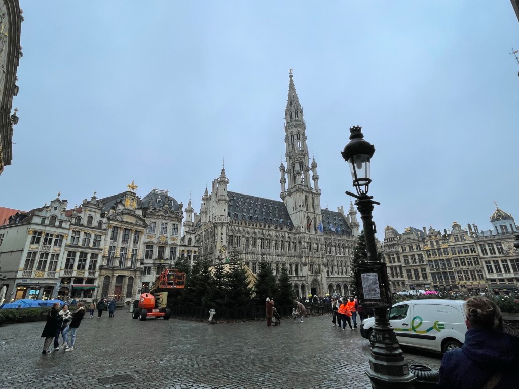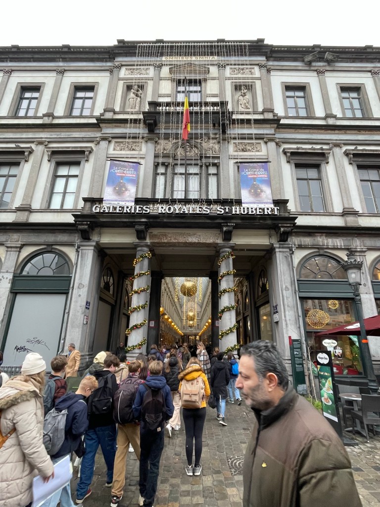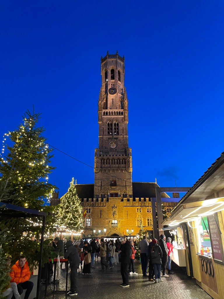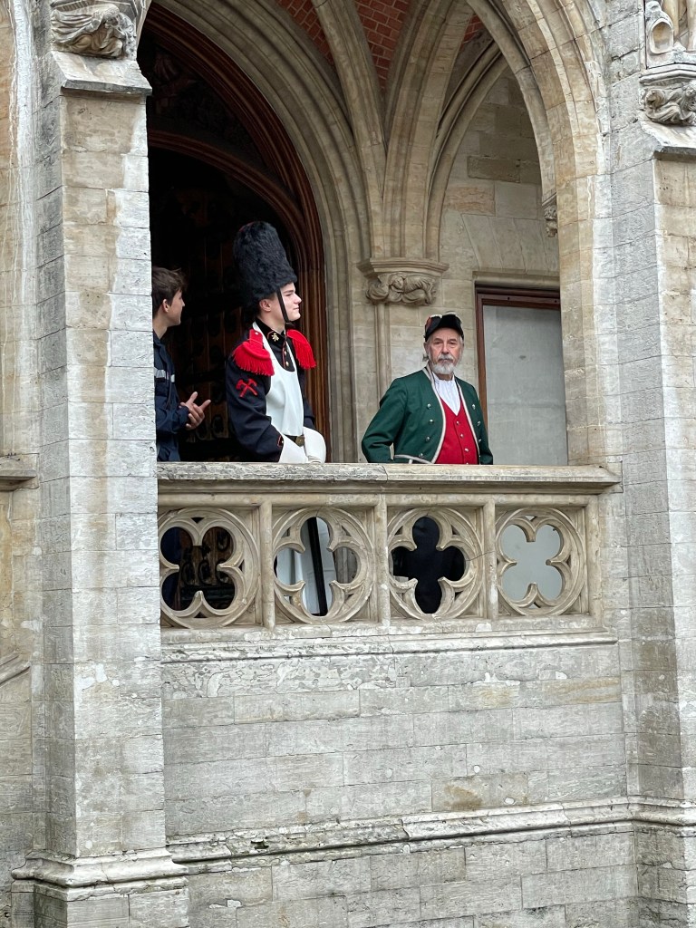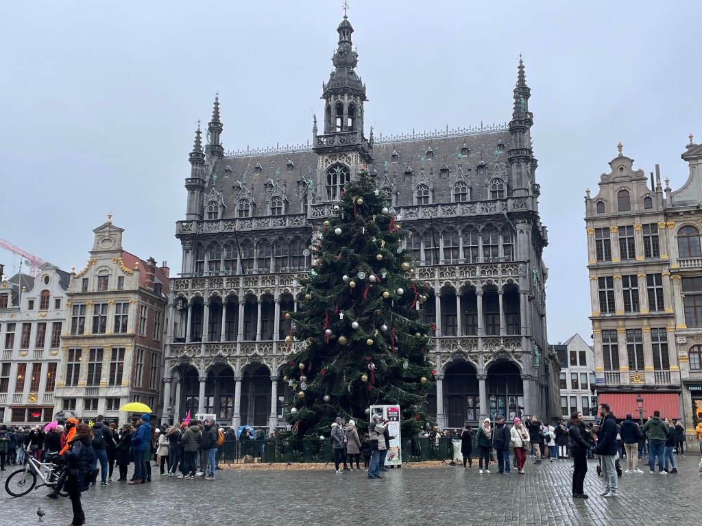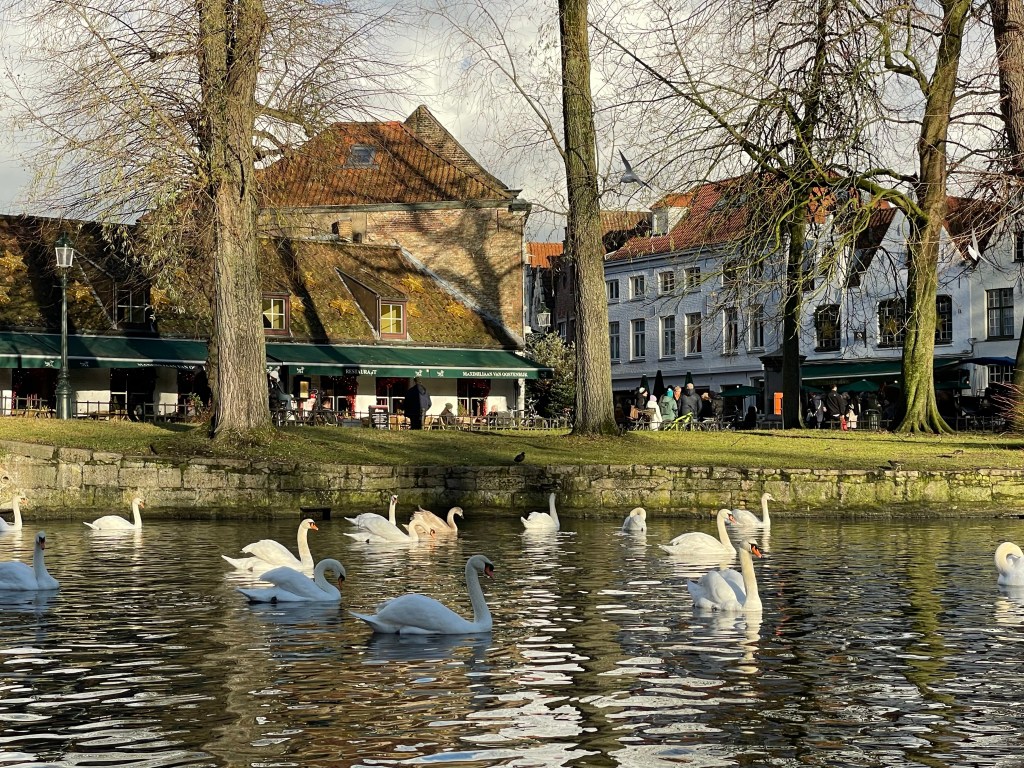 I had a great nights sleep and woke up ready for the day. No jet lag. We saw a lot of interesting things and did a canal boat ride in the afternoon to rest our feet. We stopped at a small, almost hidden bar that we learned about on our walking tour yesterday. They serve a beer there that you can’t buy anywhere else. It was packed and they were going to turn us away until a lovely woman from Portugal invited us to share a table with her and her sister. She comes to Belgium annually to visit family in Brussels and when she does she always comes to Bruges for this beer. It was her sister’s first trip there. They were delightful to spend time with and it was a real highlight of my day. When we left there was a long line of people waiting to be able to go in. When it came time to find a place for dinner we were having trouble finding something. We ended up at an Irish Pub, as one does when they are in Belgium. We were then going to go on a 3.5 kilometer walk afterwards to see a series of special light installations, but after already walking almost 24,000 steps and 10+ miles we decided against it. We had already seen a couple of them anyway. It was a good day!