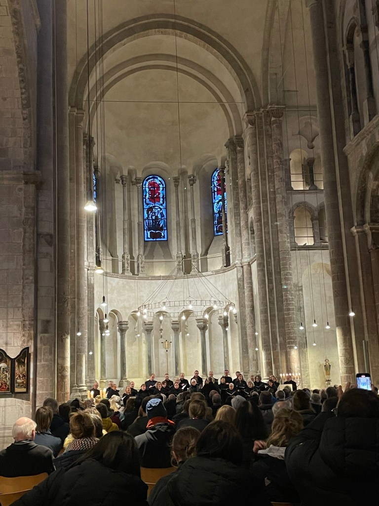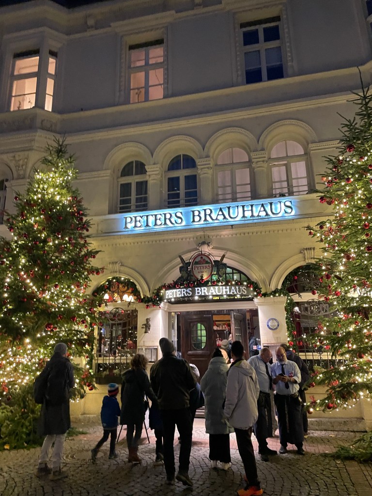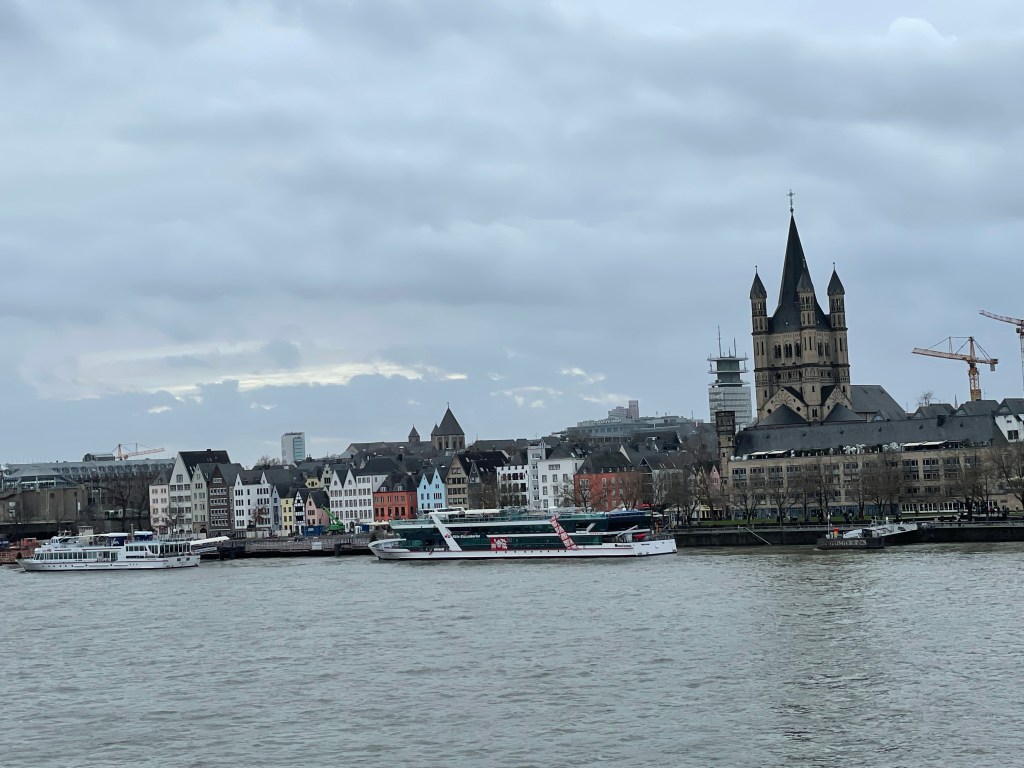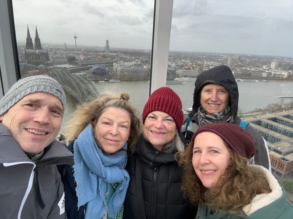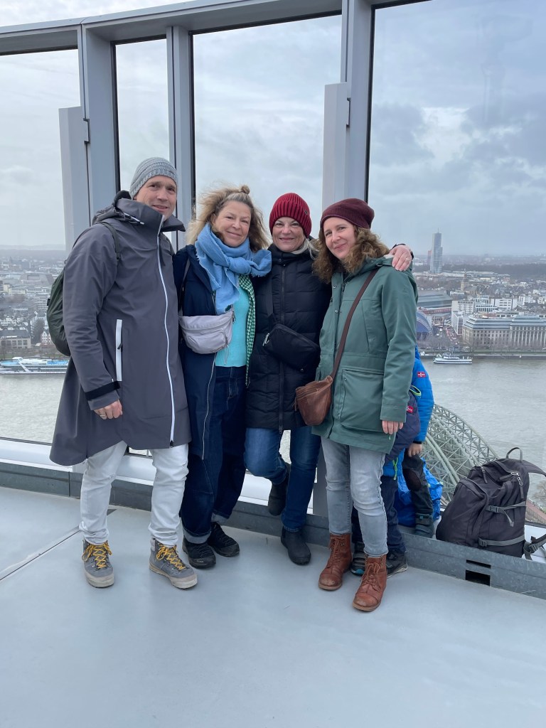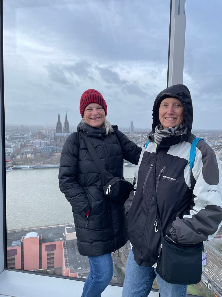 Sunday, December 10 Marie and I walked around a bit exploring until we met up with the family. We crossed the Rhine River and went to the top of a tall building for a great view. We then walked on that side of the river with a nice view of the city and crossed the next bridge to the old town. We went to the St. Martins church for a choir performance and then dinner at Peters Brauhaus, a traditional German style restaurant. The food was good and after dinner we had to say goodbye to Danielle and the boys. We stopped at a nice Christmas market with Sascha & Marc for a Glühwein before they walked us back to our hotel. Goodbyes are so hard. I wish we didn’t live so far away from each other. Tomorrow we move on to our next stop.
