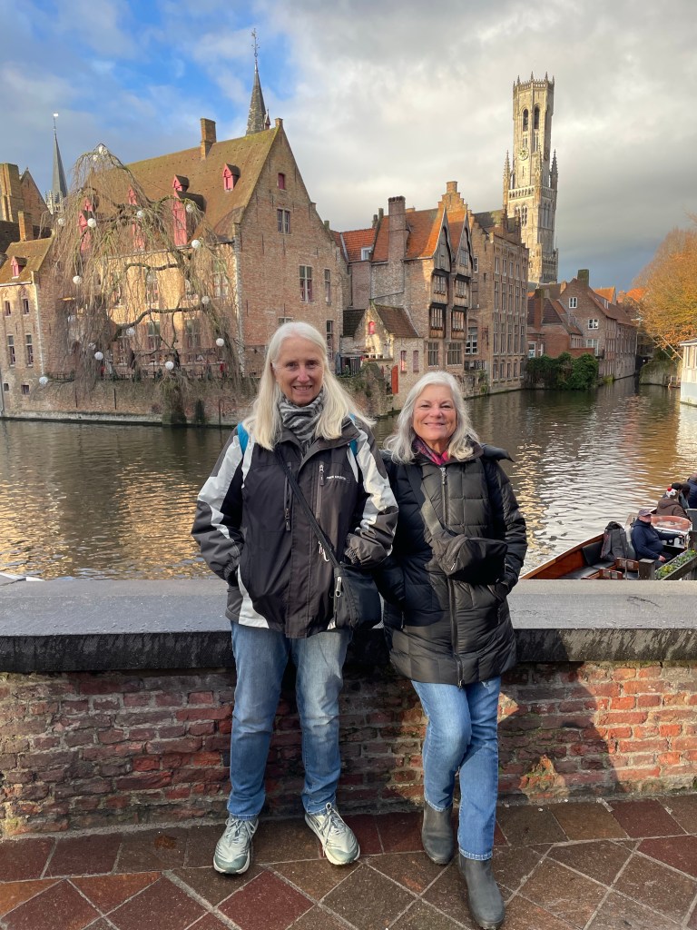 Marie and I flew out of Sacramento early Monday morning and we arrived in Brussels around 9:00 a.m. this morning. We took the train directly from the airport to Bruges. The flights were okay considering we were in economy and space is tight, and we were able to spend most of our 5 hour layover in Chicago in the United Club. They had food and drinks included, which was really nice considering how expensive airport food is. We get 2 free United Club passes every year and this is the first time I’ve been able to take advantage of them. After arriving in Bruges we took a taxi to Huis Koning, a really nice little 4 room B&B on a canal that a friend recommended. He and his family stayed here last year. Lynn is the owner and she gave us something to drink and a snack as she told us about things to see and do here. We went back out and walked around a bit before taking a very informative walking tour. After that we retraced our steps a bit and then got an early dinner. We hadn’t eaten all day since Marie had a breakfast sandwich on the plane this morning and I had a little 3”Belgian waffle that Lynn had put out for us. Neither of us ate dinner on the plane. We are making it an early night so we can get our things organized and get some sleep. It’s cold here, but we will hopefully stay warmer tomorrow.We arrived in Brussels this morning and took a train straight to Bruges. The flights were okay considering we were in economy and space is tight, and we were able to spend most of our 5 hour layover in Chicago in the United Club. They had food and drinks included, which was really nice considering how expensive airport food is. We get 2 free United Club passes every year and this is the first time I’ve been able to take advantage of them. After arriving in Bruges we took a taxi to Huis Koning, a really nice little 4 room B&B on a canal that a friend recommended. He and his family stayed here last year. Lynn is the owner and she gave us something to drink and a snack as she told us about things to see and do here. We went back out and walked around a bit before taking a very informative walking tour. After that we retraced our steps a bit and then got an early dinner. We hadn’t eaten all day since Marie had a breakfast sandwich on the plane this month and I had a little 3”Belgian waffle that Lynn had put out for us. Neither of us ate dinner on the plane. We are making it an early night so we can get our things organized and get some sleep. It’s cold here, but we will hopefully stay warmer tomorrow.set off on our girls trip. After a long travel day we arrived in Brussels at 9:00 a.m. and took a train straight to Bruges. The flights were okay considering we were in economy and space is tight, and we were able to spend most of our 5 hour layover in Chicago in the United Club. They had food and drinks included, which was really nice considering how expensive airport food is. We get 2 free United Club passes every year and this is the first time I’ve been able to take advantage of them. After arriving in Bruges we took a taxi to Huis Koning, a really nice little 4 room B&B on a canal that a friend recommended. He and his family stayed here last year. Lynn is the owner and she gave us something to drink and a snack as she told us about things to see and do here. We went back out and walked around a bit before taking a very informative walking tour. After that we retraced our steps a bit and then got an early dinner. We hadn’t eaten all day since Marie had a breakfast sandwich on the plane this month and I had a little 3”Belgian waffle that Lynn had put out for us. Neither of us ate dinner on the plane. We are making it an early night so we can get our things organized and get some sleep. It’s cold here, but we will hopefully stay warmer tomorrow.