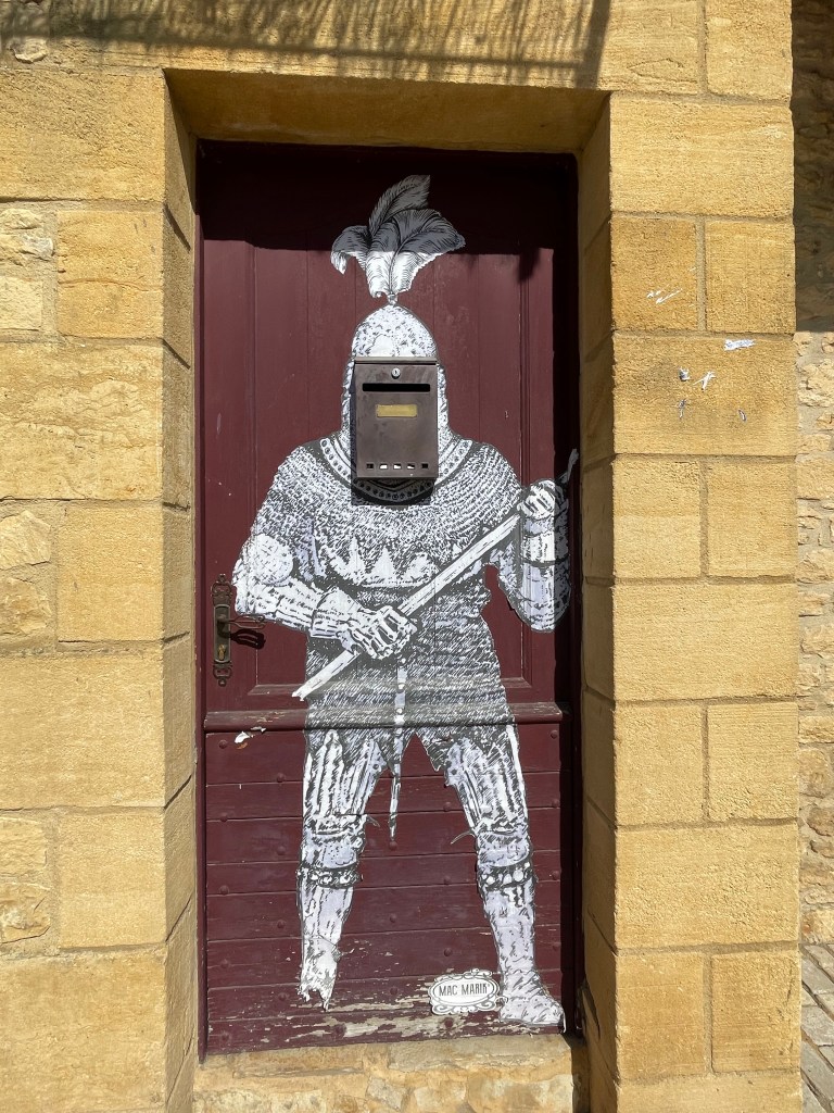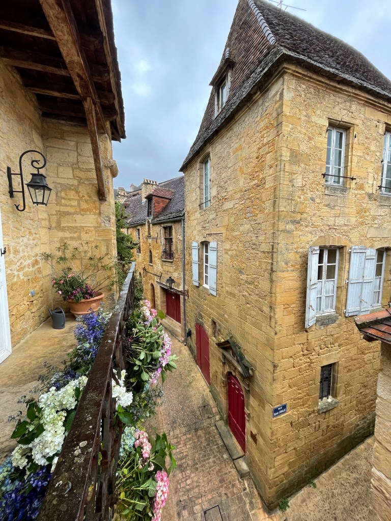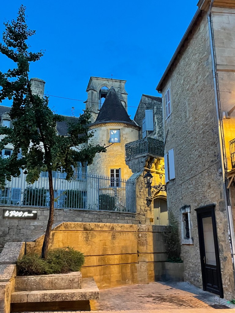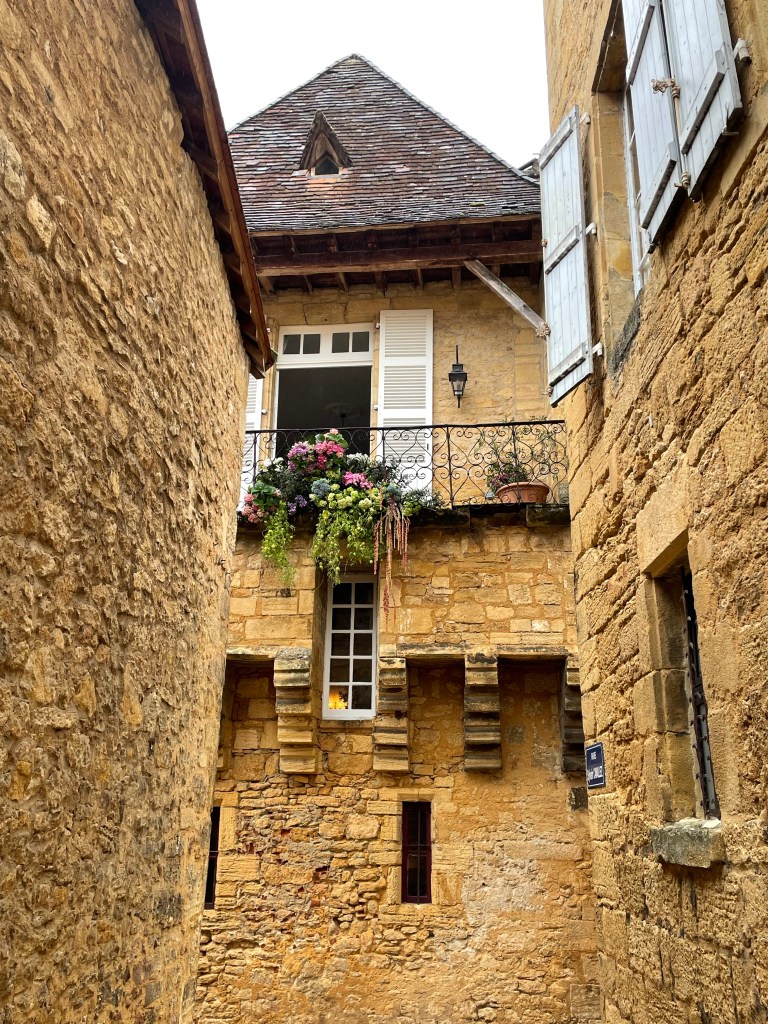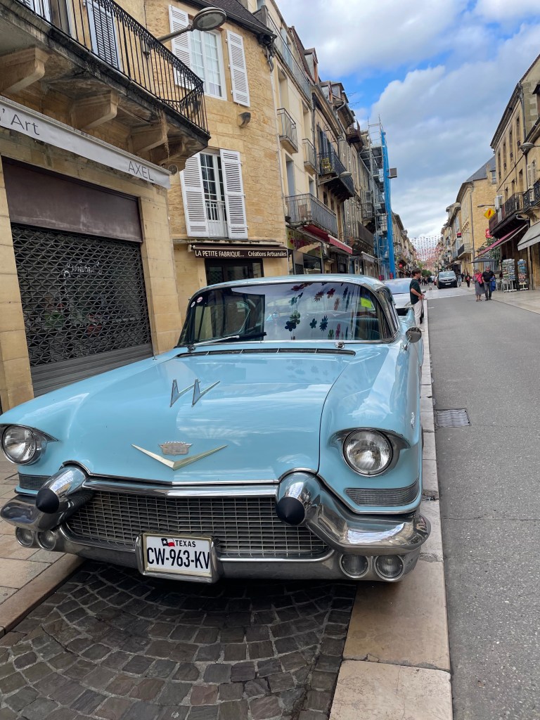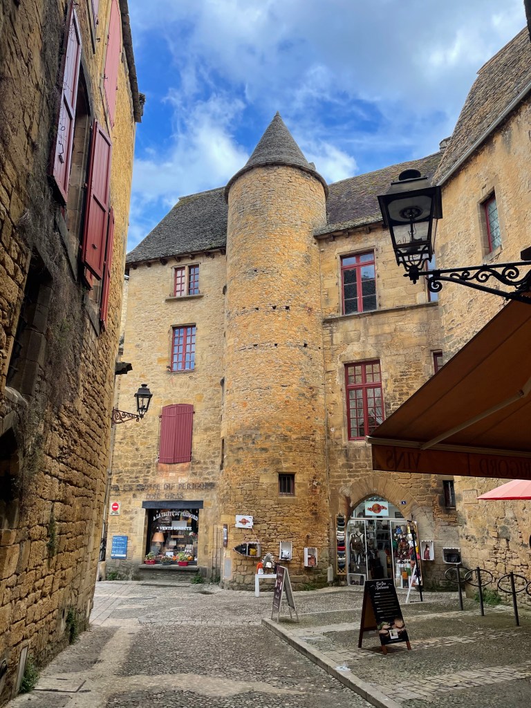 Friday, September 30 we woke up at our hotel near the airport, had breakfast and took a taxi back to the airport. Those 2 taxi rides ended up costing us $45. That was for 2 miles each way. What a rip off. After a mechanical situation with the first car we finally got on the road. After SUV’s for 4 people with automatic transmissions in Ireland and Scotland we now had 4 door Fiat 500 with a manual transmission. Very different, but the car is fine. We got a later start than we had hoped for so had to bypass a stop I was wanting to make on the way to a cute little town. We will see a lot of cute towns, so not a big deal. We got to Sarlat a couple of hours before we were to meet our Airbnb host at our apartment. We took advantage of the time by walking around the old town, and we shared a snack. We met the host and then headed for the grocery store to buy supplies for the next 5 nights. After taking our purchases and luggage up the the apartment we went back into the old town which is less than a 5 minute walk. We walked around so more and then had dinner. We both love this town. There’s some new and interesting around every corner. We’re going to like it here.