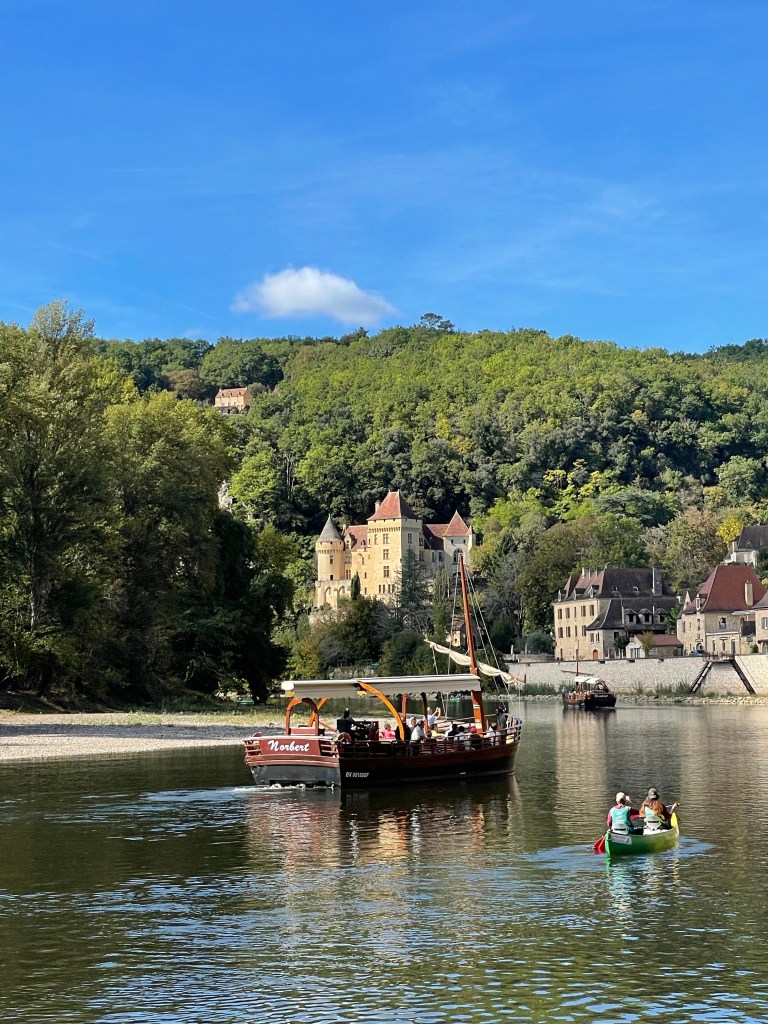 We later went to the village of La Roque-Gageac and took a boat ride on the Dordogne River in a reproduction of a 19th century gabarre, the type of boat used to move wares on the river before trains were available. Unfortunately they had amended the itinerary and we weren’t able to see everything we were expecting to see, but it was fun.