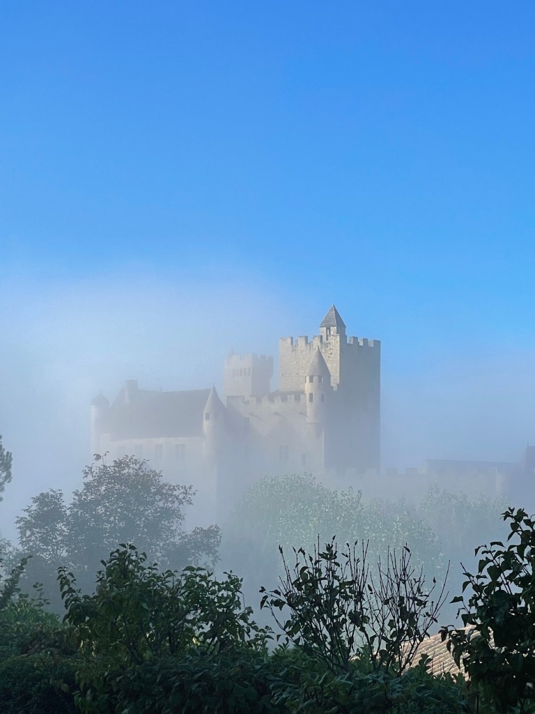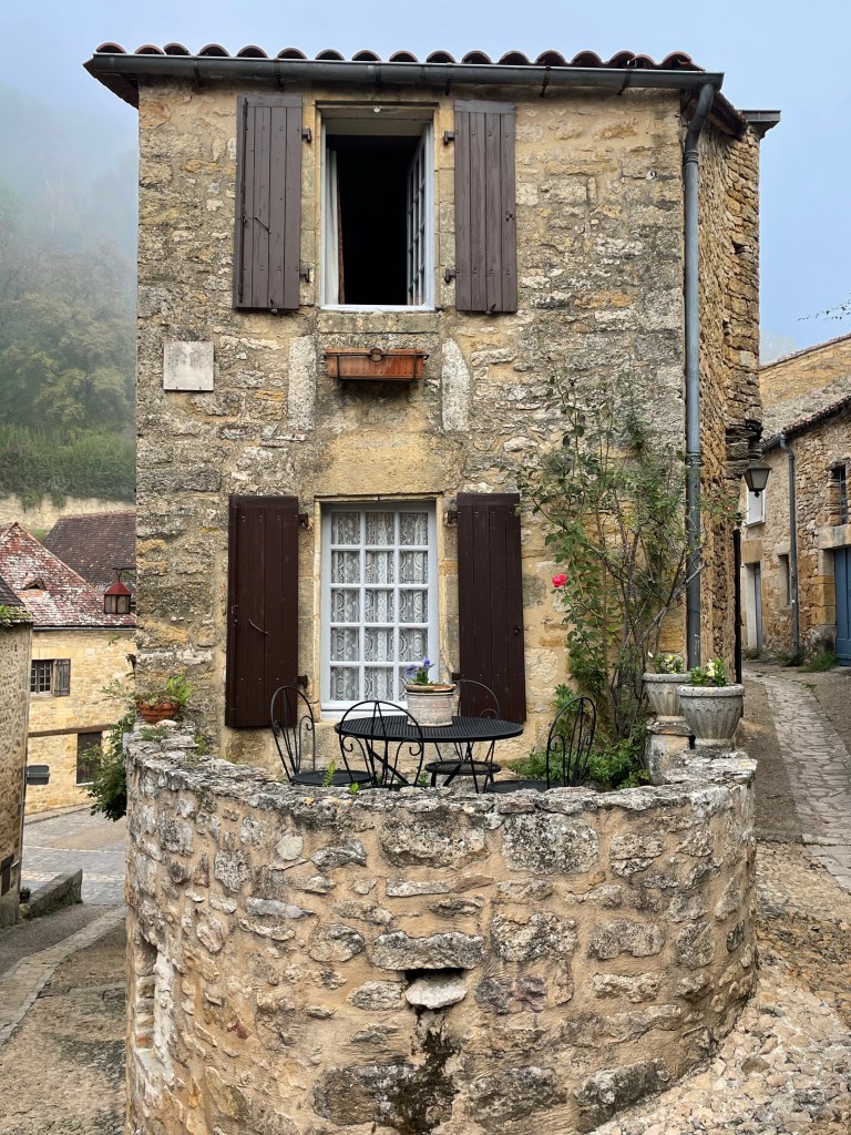 Tuesday, October 4 we started the day by driving to Beynac. It was foggy and a bit of a challenge at times. Beynac is small, there was nothing happening and not much was open. We walked along the river and a few streets in town, then drove up to the château. We didn’t plan to go in since we will be seeing some other château soon, but we wanted to see it.